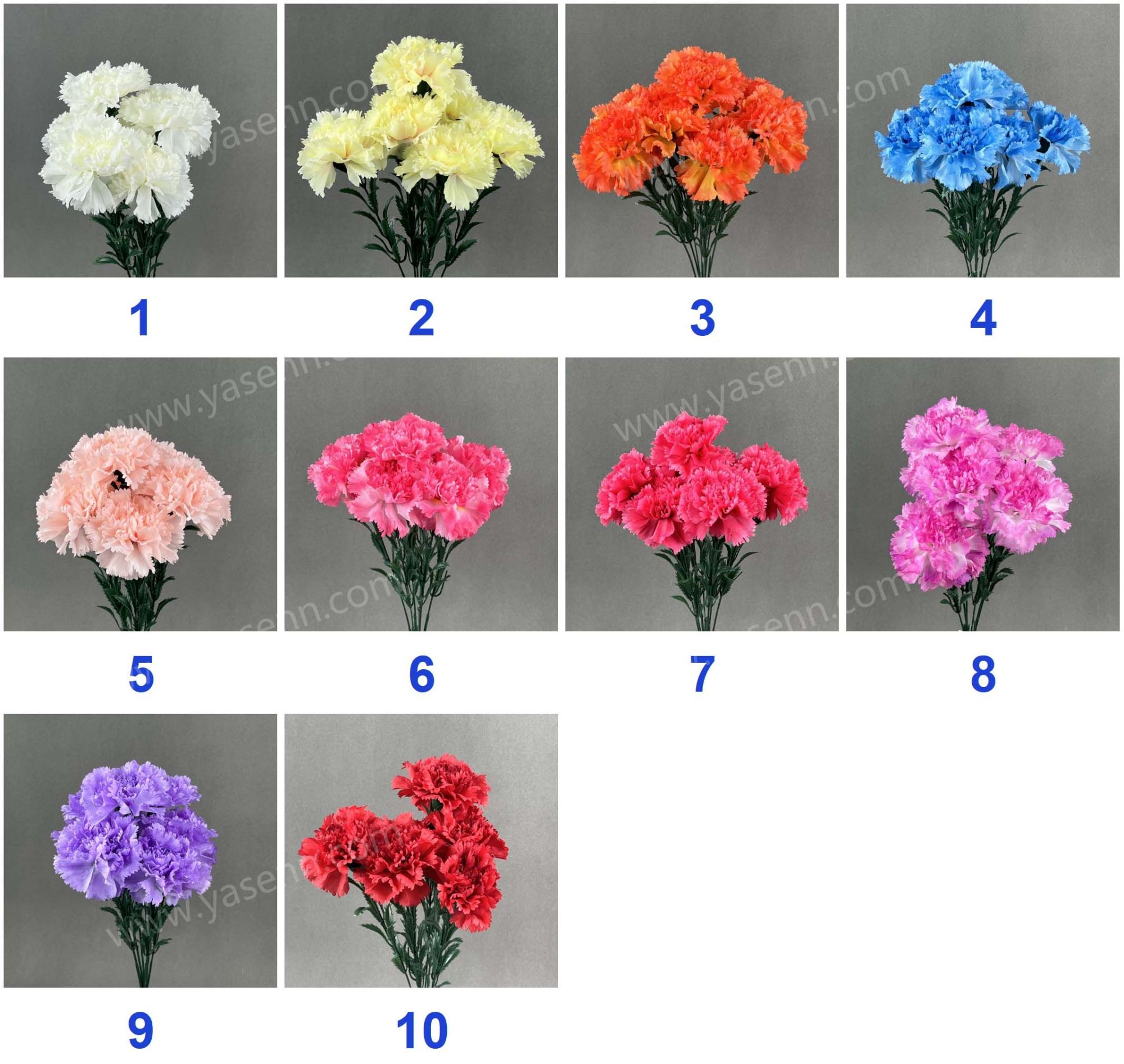 Description:HEIGHT 47CM / 7 CARNATION / 7 FLOWERS /DIA 10CM / 9 LAYERS/ PONGEE