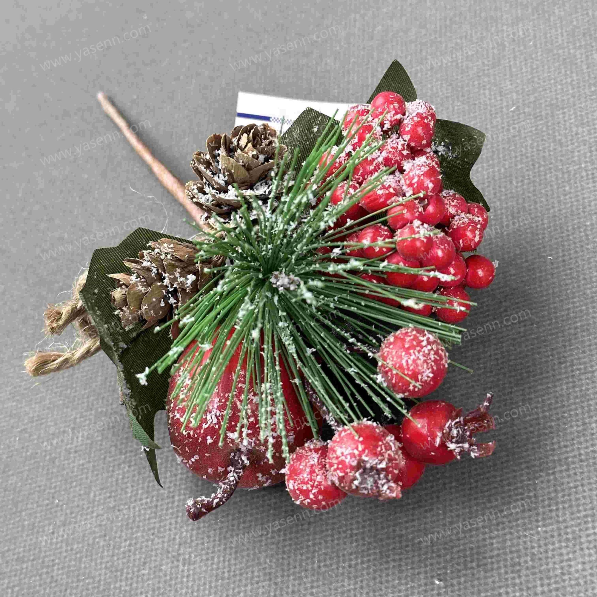 HEIGHT 21CM/SINGLE CHRISTMAS BRANCH/2 PINE CONES, 1 PINE NEEDLE, 5 LARGE RED BERRIES, 1 APPLE, 1 SMALL RED BERRY/FOAM PLASTIC/SPRINKLE POWDER/3 PCS LEAVES