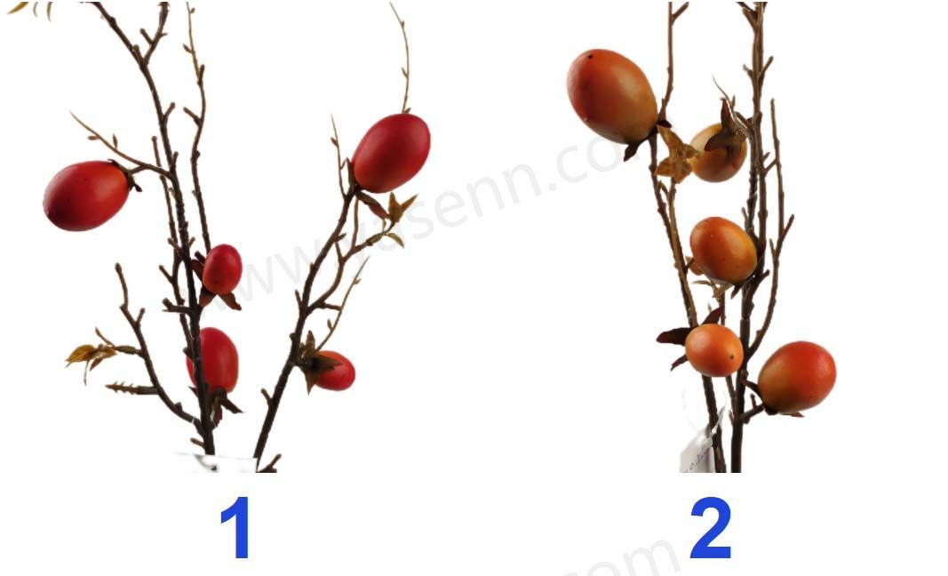 Description:HEIGHT 75CM/2 BRANCHES PERSIMMON/3PCS BIG FRUITS 1PCS MEDIUM FRUITS 2PCS SMALL FRUITS/DIA 3CM 2.5CM 2CM/FOAM/3PCS LEAVES