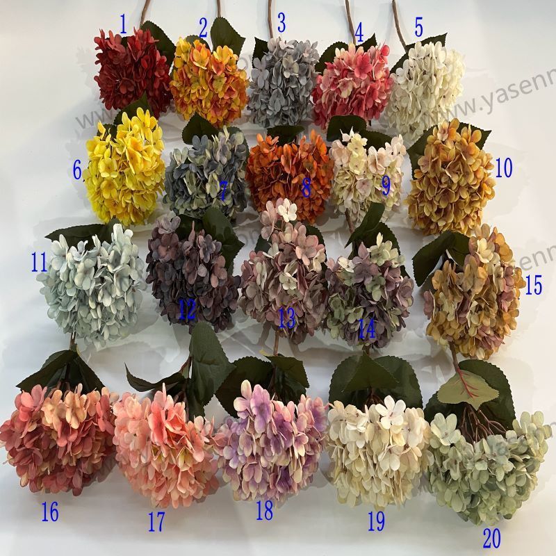 Description:HEIGHT 35CM/ SINGLE HYDRANGEA/96 FLOWERS / DIA 30CM/ 6 LEAVES/COATED FABRIC