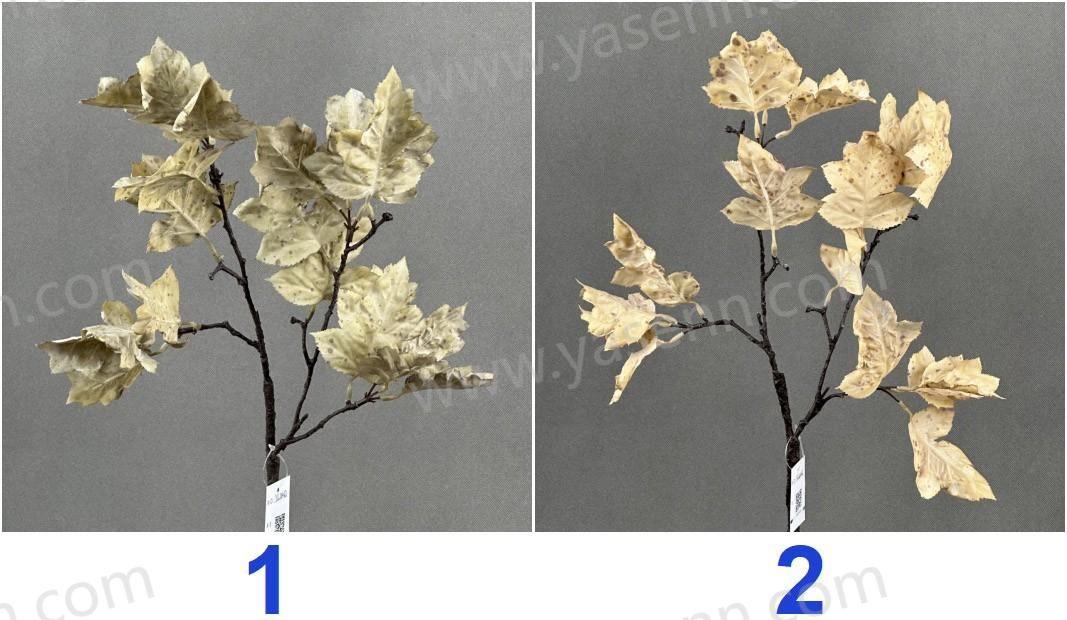 Description:HEIGHT 64CM/SINGLE STEM OF SMALL MAPLE LEAVES/7 BIG LEAVES 12 SMALL LEAVES/GLUING/Sprinkle powder