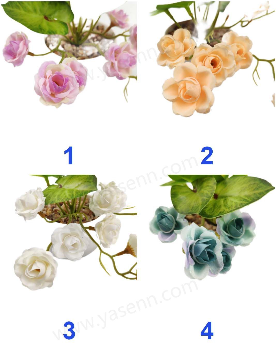Packing Inf.:HEIGHT 15CM/ROSE BONSAI/10PCS FLOWERS/4 LAYERS/DIA 3CM/8PCS LEAVES/PONGEE/PLASTICS/206G YSM23106