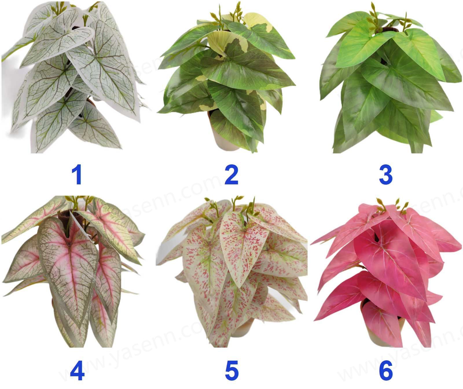 Packing Inf.:HEIGHT 24CM/CALADIUM BICOLOR BONSAI/24PCS LEAVES/RUBBERIZED FABRIC/PLASTICS/162G YSM23135