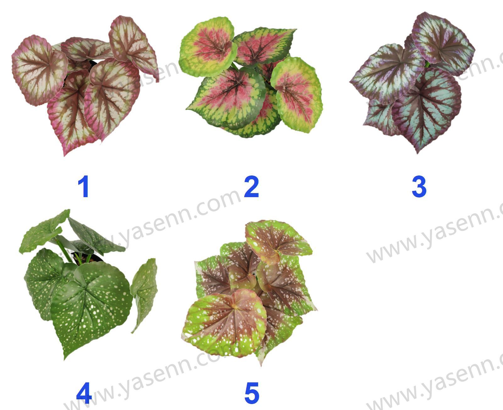 Packing Inf.:HEIGHT 18CM/BEGONIA LEAF BONSAI/LONG 21CM WIDE 20CM/6PCS LEAVES/139g/RUBBERIZED FABRIC/PLASTICS YSM23178