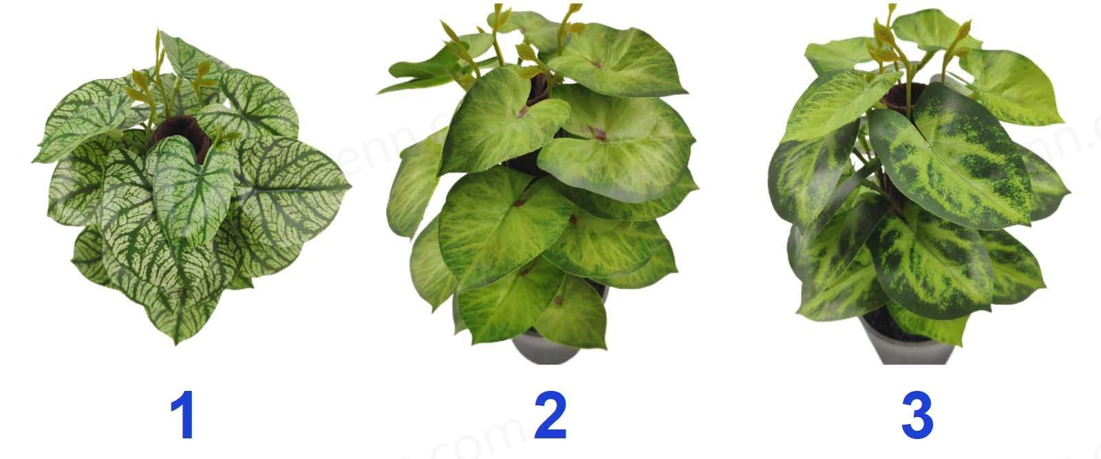 Packing Inf.:HEIGHT 24CM/CALADIUM BICOLOR BONSAI/24PCS LEAVES/RUBBERIZED FABRIC/PLASTICS/138G YSM23137