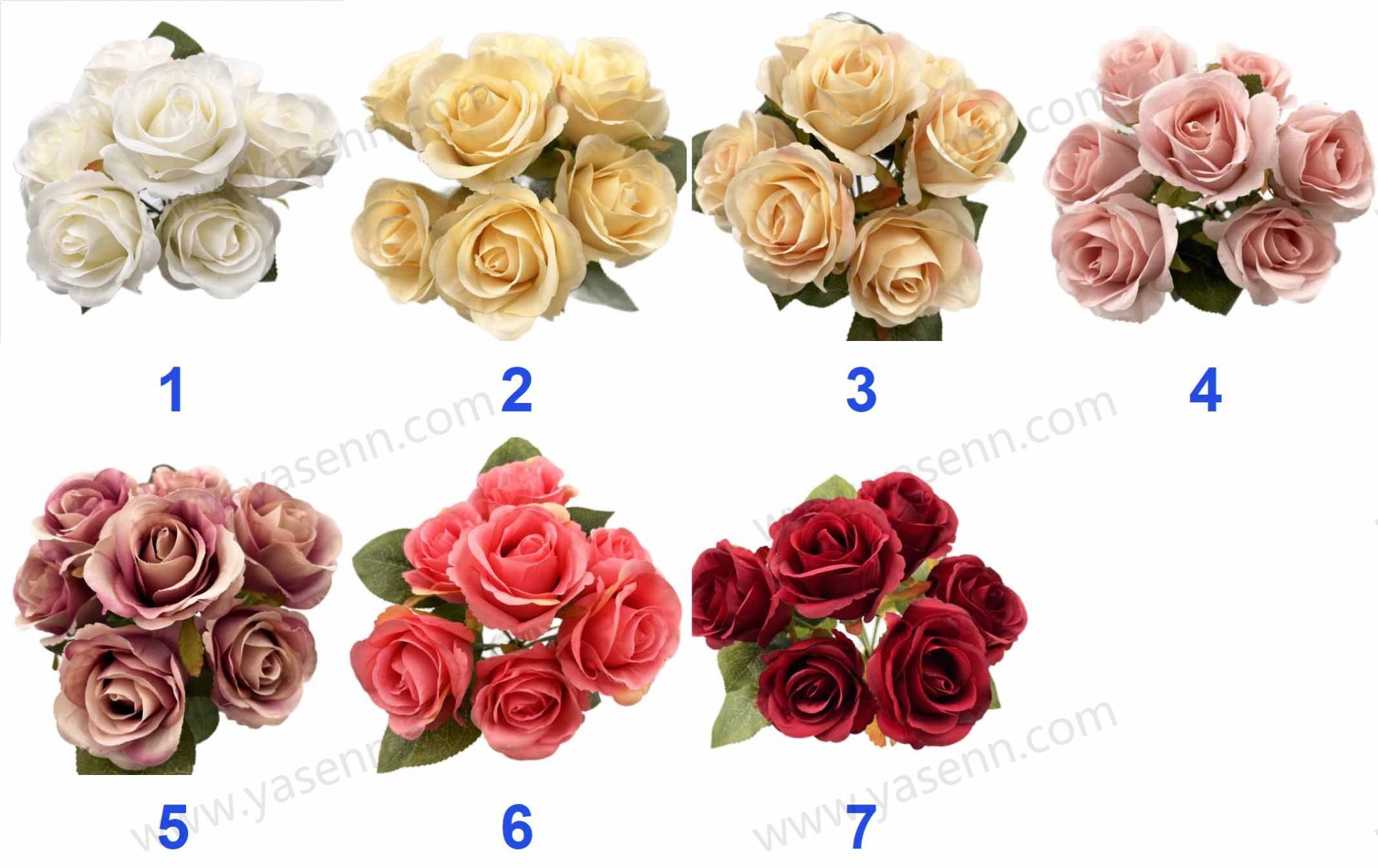 Description:HEIGHT 30CM/7 BRANCHES ROSE/7 ROSE /DIA 6CM /NUMBER OF LAYERS 5 /PONGEE / 4 PCS LEAVES