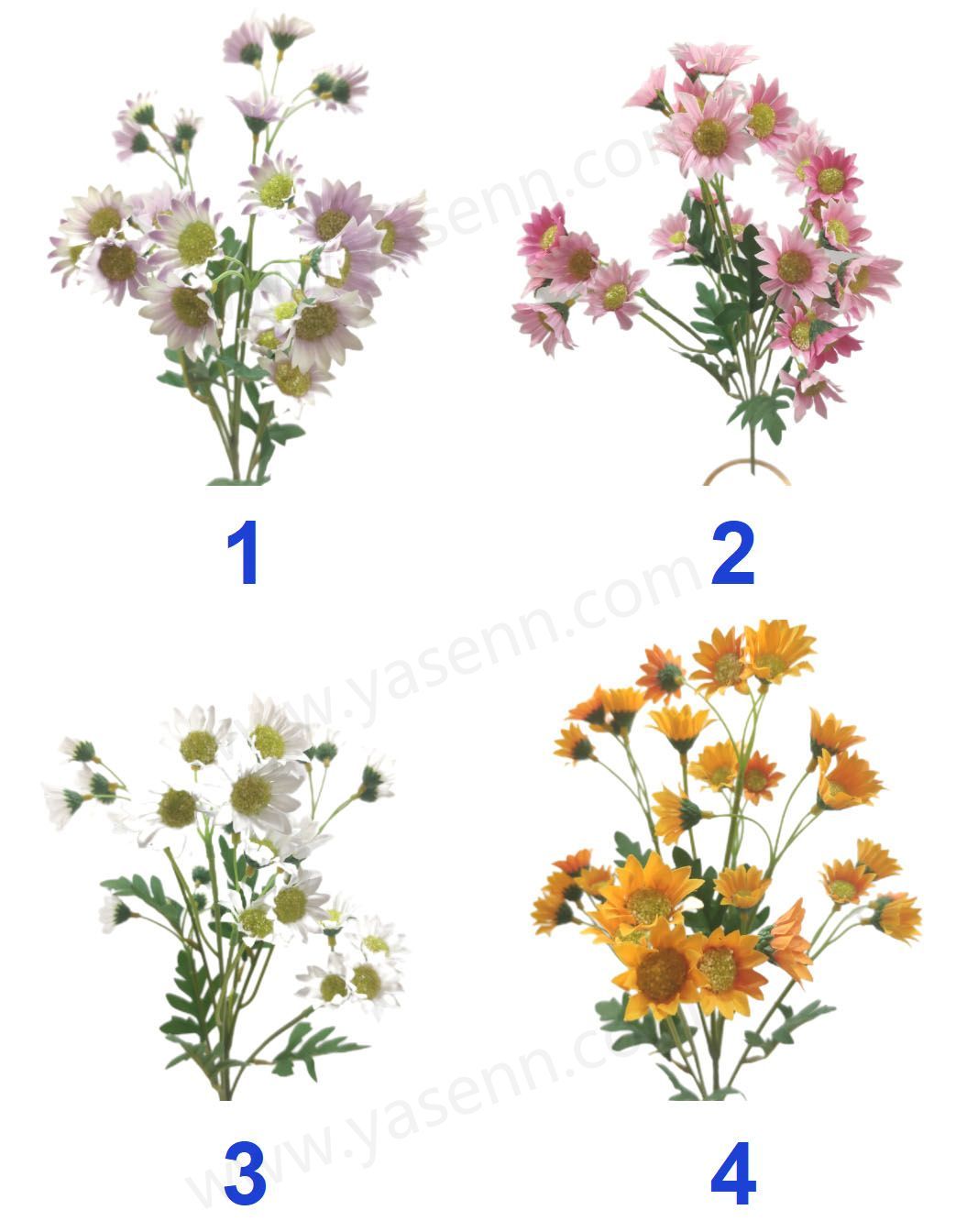 Description:HEIGHT 60CM/4 BRANCHES DAISY/17PCS BIG FLOWERS 14PCS SMALL FLOWERS/DIA 3.5CM 2.5CM/1 LAYERS/PONGEE/6PCS LEAVES