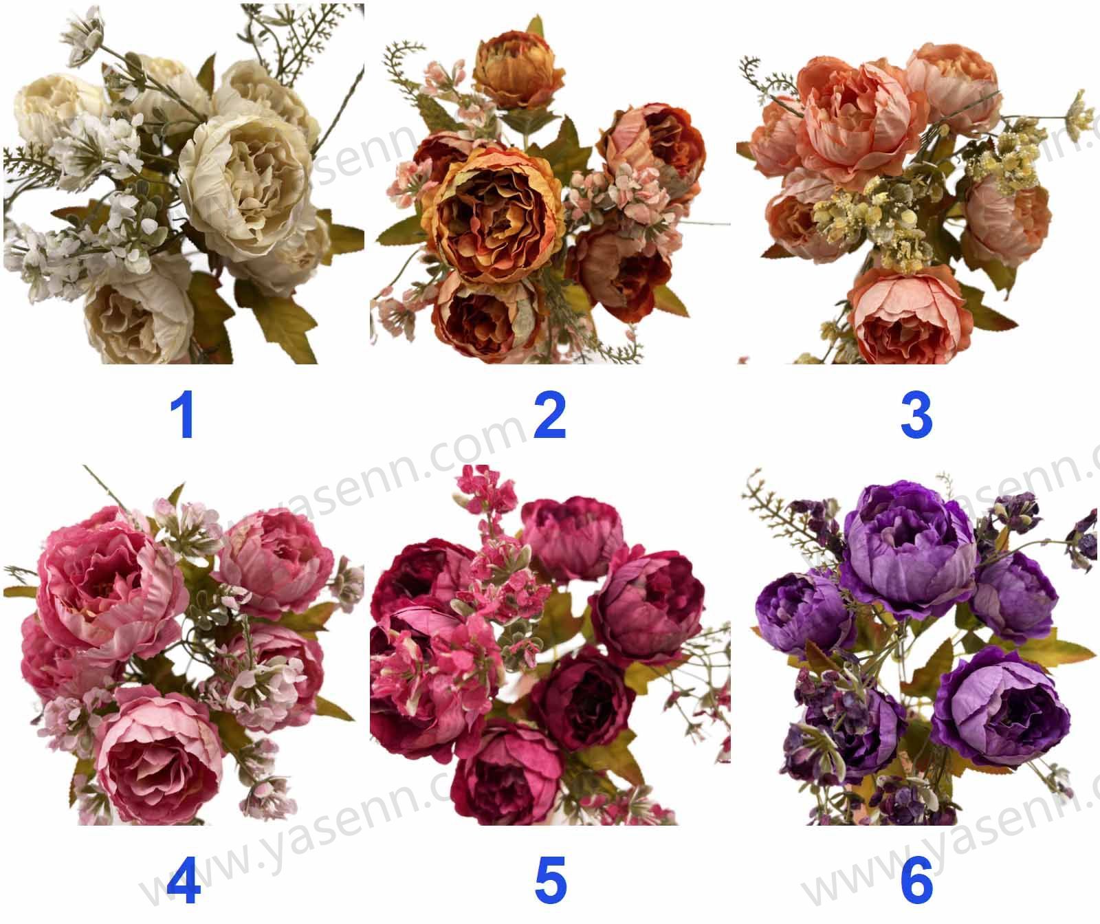 HEIGHT 30CM/6 PEONY/6 FLOWER/ DIA 5.5CM/7LAYER/STRARCHED FABRIC/5LEAVES