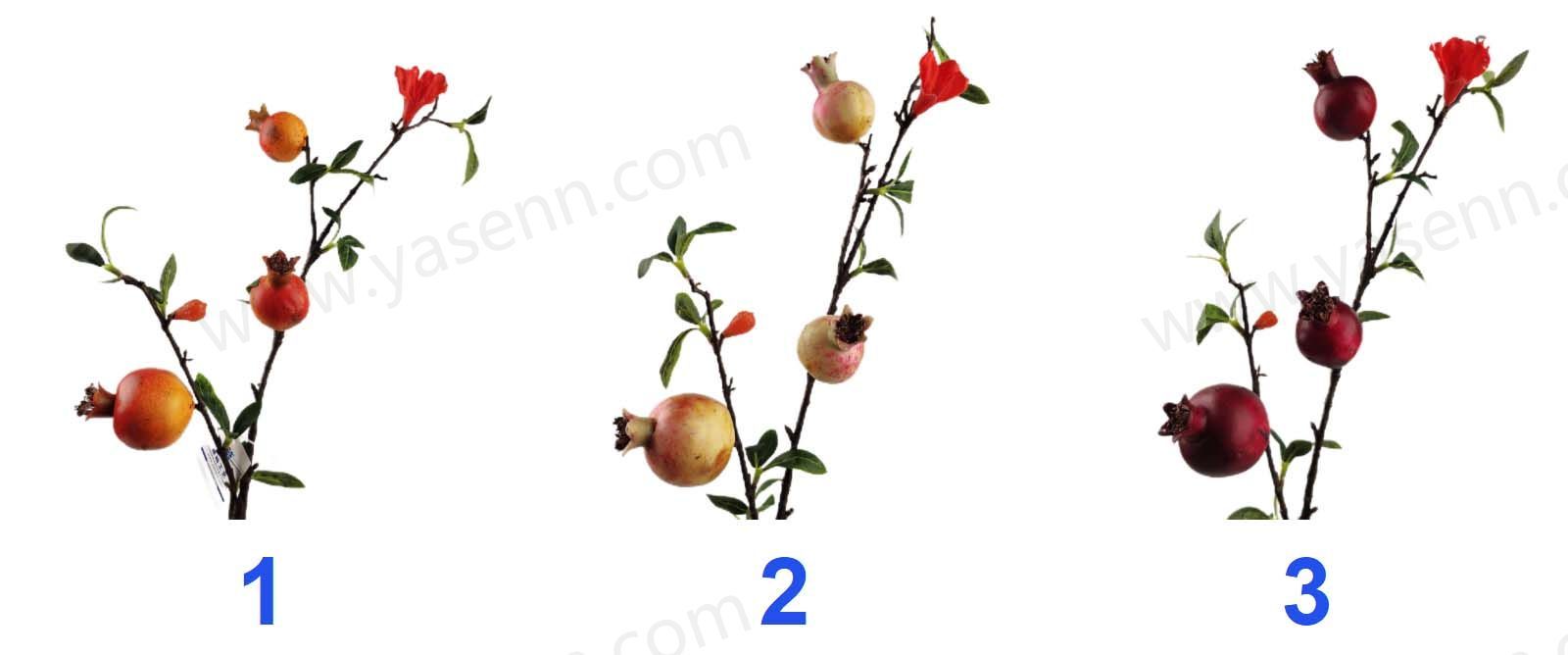 Description:HEIGHT 70CM/2 BRANCHES POMEGRANATE/1PCS BIG FRUIT 2PCS SMALL FRUITS 1PCS FLOWER 1PCS FITTINGS/DIA 5CM 3.5CM FLOWERS:3.5CM/2 LAYERS/7PCS LEAVES/FOAM