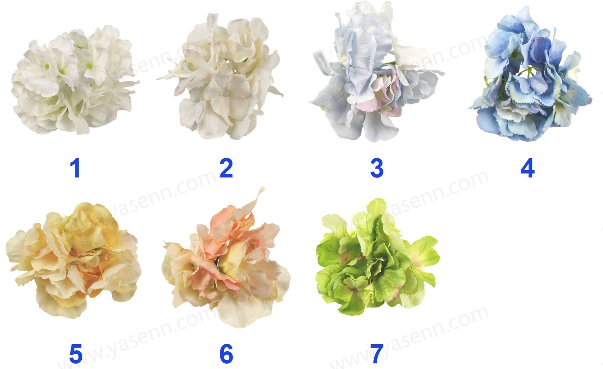 Description:HEIGHT 63CM/HYDRANGEA/70PCS FLOWERS/1 LAYERS/DIA 6.5CM/STRARCHED FABRIC/4PCS LEAVES